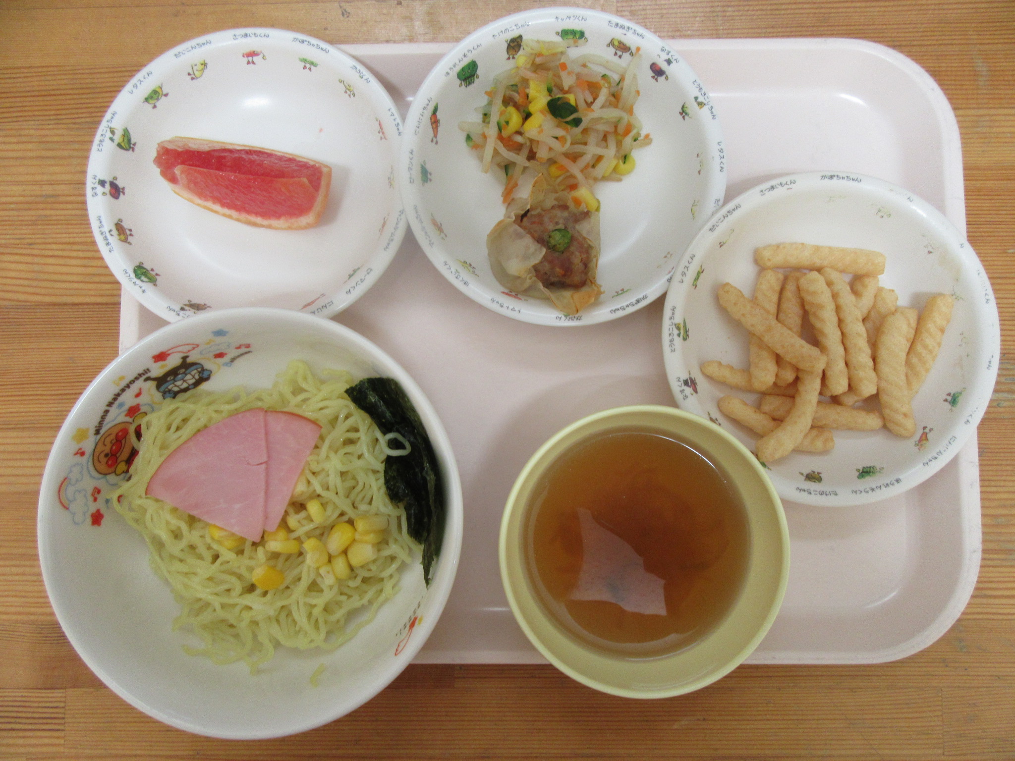 ・醤油ラーメン ・シュウマイ ・彩りナムル ・グレープフルーツ
