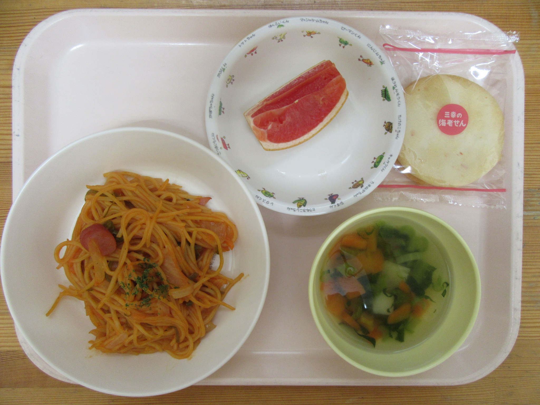 ・ナポリタン ・野菜スープ ・グレープフルーツ