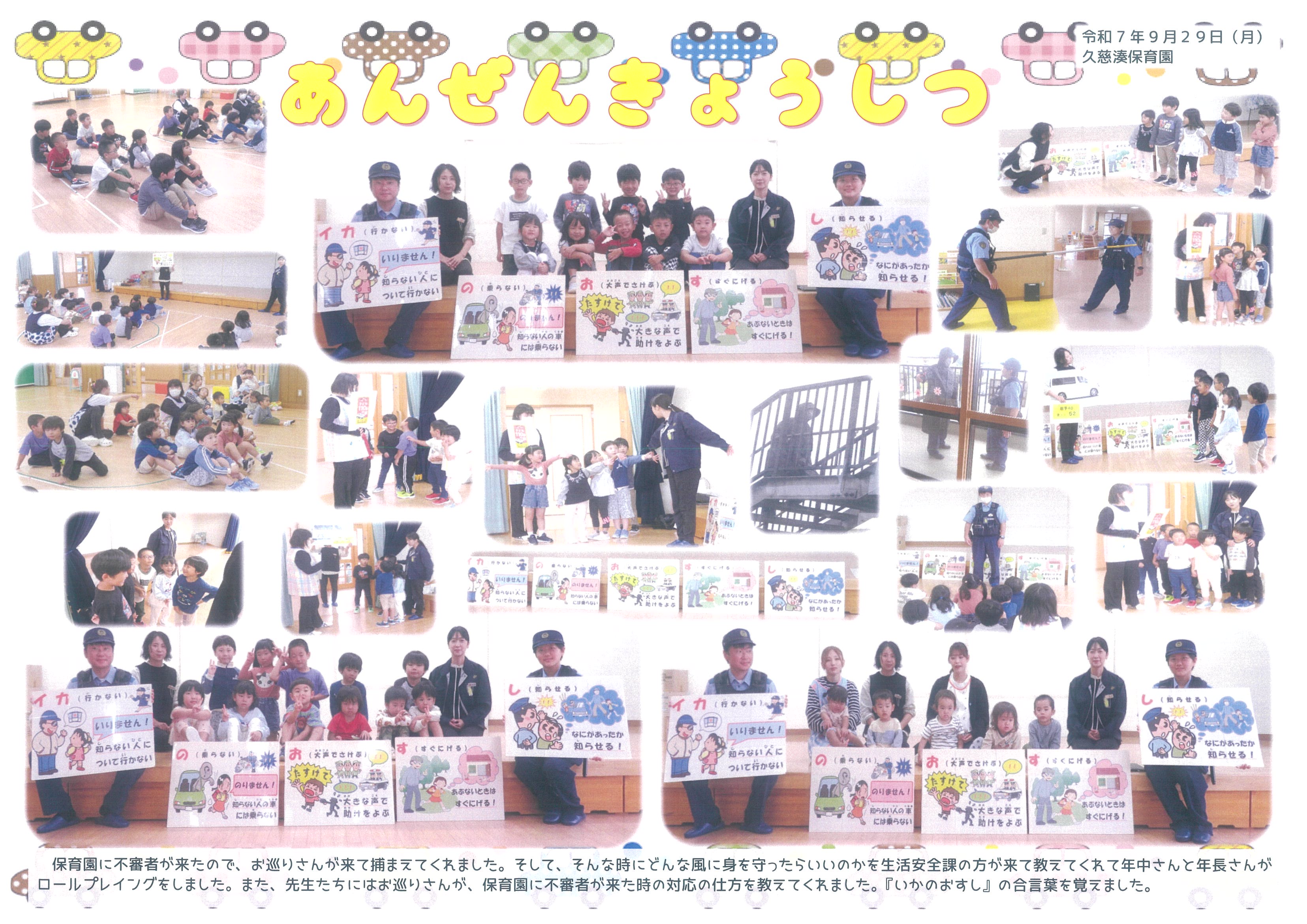 その後は警察署にも見学に行きました。お巡りさんの持ち物を触ってみたり、パトカーにも乗せてもらいました。