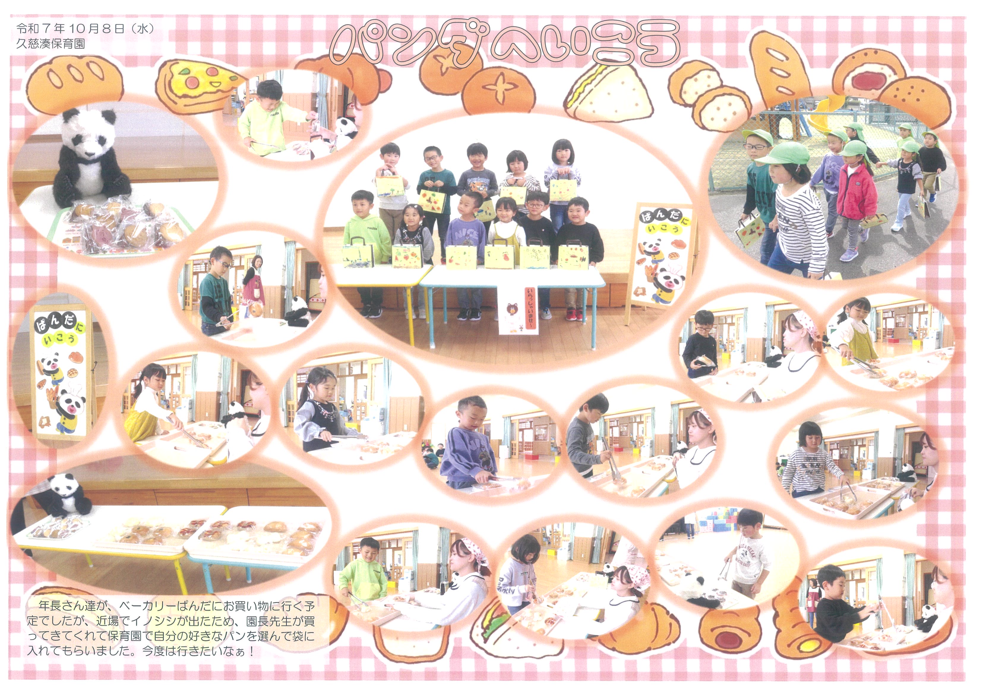 年長さんたちが、ベーカリーぱんだに、パンを買いに行く予定でした。近場にイノシシが出たということで急遽保育園でぱんだの