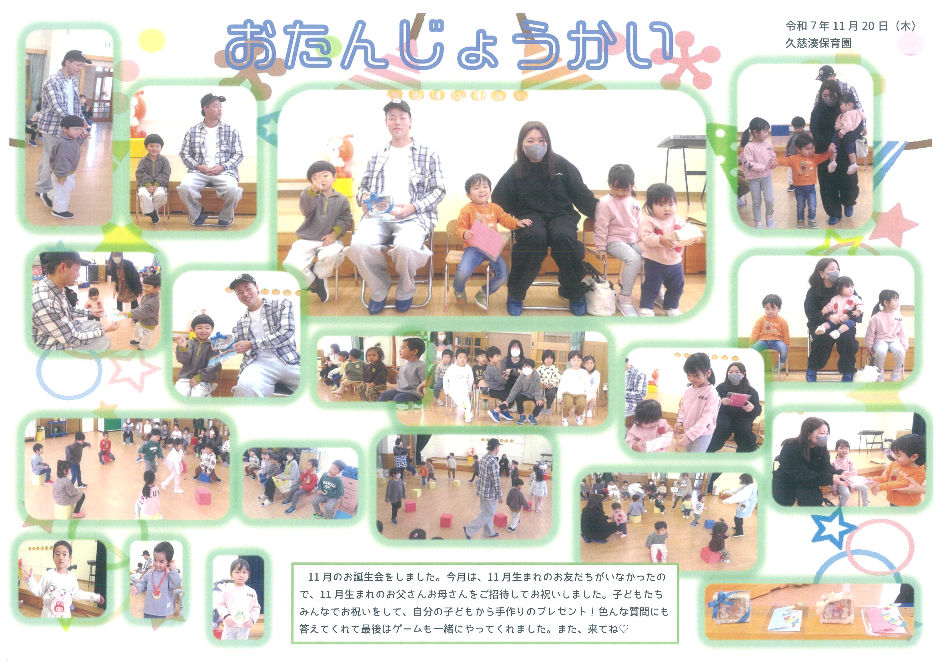 七夕の日、保育園では、誕生会も一緒にお祝いしました。お誕生児さんは緊張して入場しましたが、自己紹介はとても上手にできました。